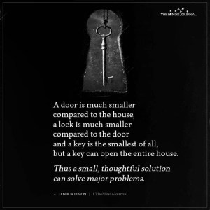 In our complex world, it’s easy to get overwhelmed by the magnitude of problems we face. We often believe that only grand gestures and massive efforts can make a significant impact. However, if we take a moment to reflect on a simple analogy – the relationship between a door, a lock, and a key – we can gain a profound understanding of the power of small and thoughtful solutions.