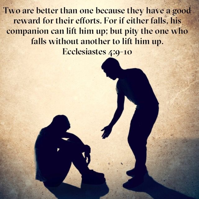 Verse: Ecclesiastes 4:9-10 – “Two are better than one because they have a good reward for their toil. For if they fall, one will lift up his fellow. But woe to him who is alone when he falls and has not another to lift him up!”